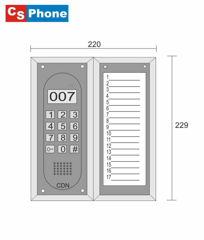 Komletní digitální dvouvodičové tablo CDN pro maximálně 17 účastníků s osazeným bezkontaktním přístupovým systémem RFID (ACC). Ústředny CDN jsou vyrobeny ze slitiny hliníku a jsou dodávány s nezer rámečkem.Tyto materiály zajišťují vynikající ochranu vůči zničení a atmosférickým vlivům. CDN systém je snadno obsluhovatelný a funkčně velice jednoduchy programovatelný z klávesnice systému. Dvouvodičová instalace zajišťuje také velice jednoduchý systém zapojení.